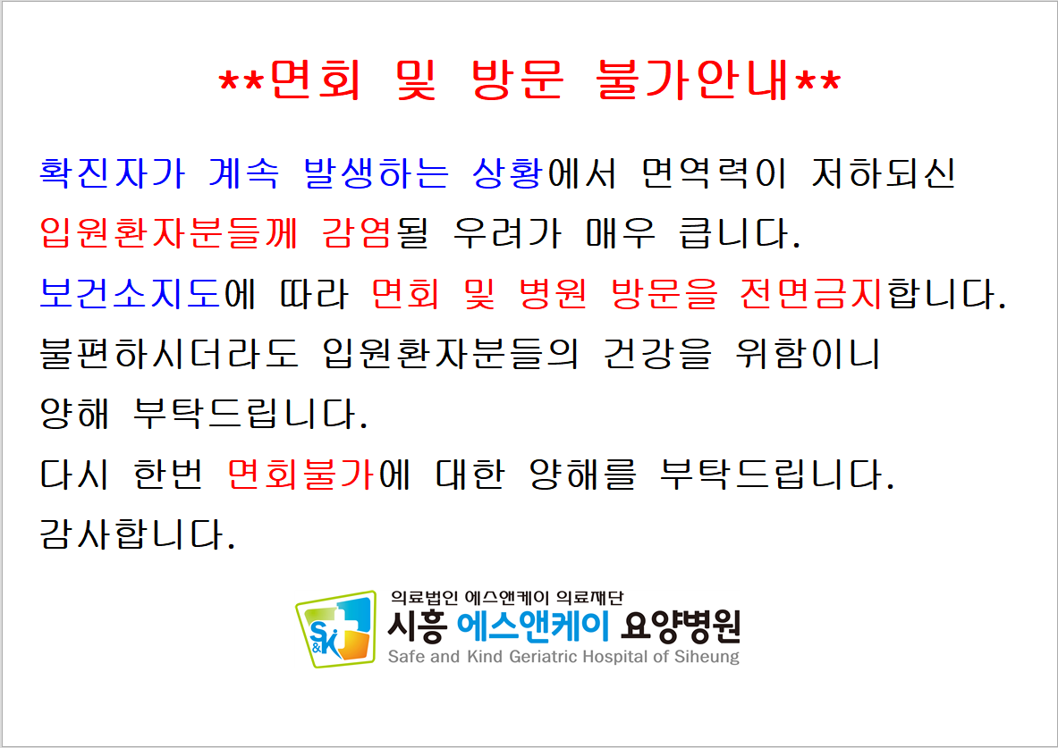 불편하시더라도 입원환자분들의 건강을 위함이오니
