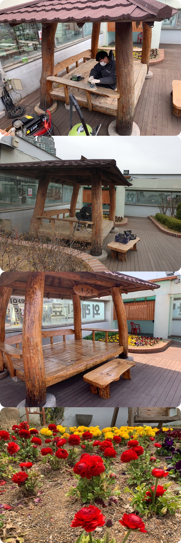 4월 봄을 맞이 하여 정자를 이쁘게 단장 해주셨어요.