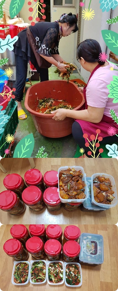 6월에는 반찬 나눔봉사 독거어르신, 신천자원봉사자 등과 함께 시흥시 실내체육관 지하식당에서 갈치조림, 간장게장, 열무김치 등 밑반찬을 만들었으며, 신천동 관내 저소득층, 독거어르신 등 총 20여가정의 어르신에게 밑반찬을 전달하였습니다.