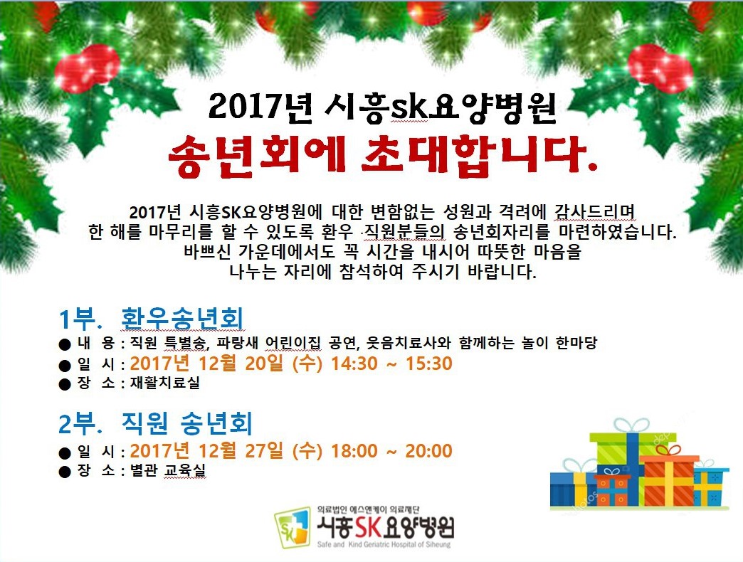 2017년 12월 20일에 환우 송년회가 재활치료실에서 있습니다.