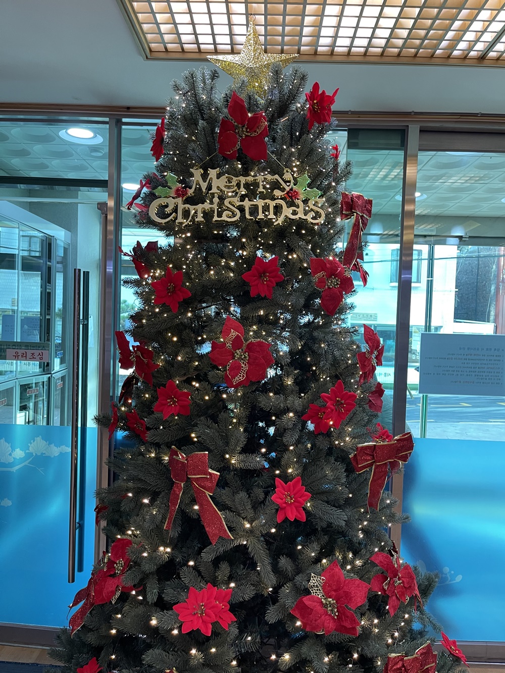 1층 원무과 앞에 크리스마스 트리를 장식 하였습니다.