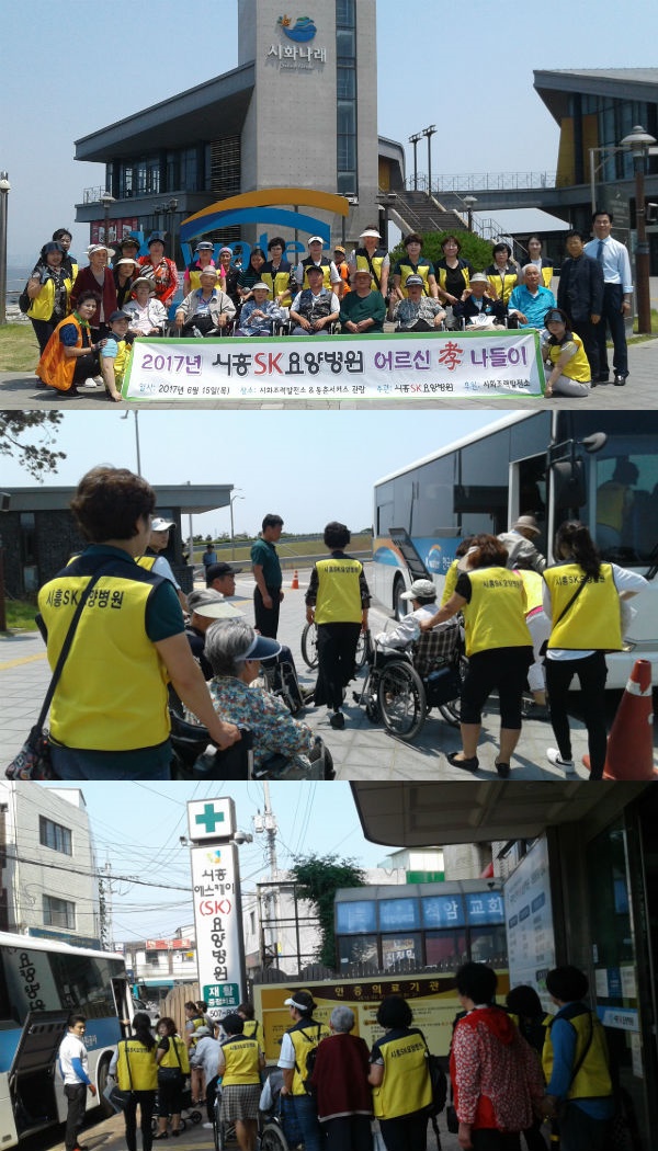 대야동 495-13 위치한 의료법인 에스앤케이 SK요양병원(이사장 선영배)에서는 입원어르신들을 병원관계자 및 자원봉사자 등 35명은 6월 15일 시화조력발전소 전망대와 대부도 동춘서커스 나들이를 다녀왔다.