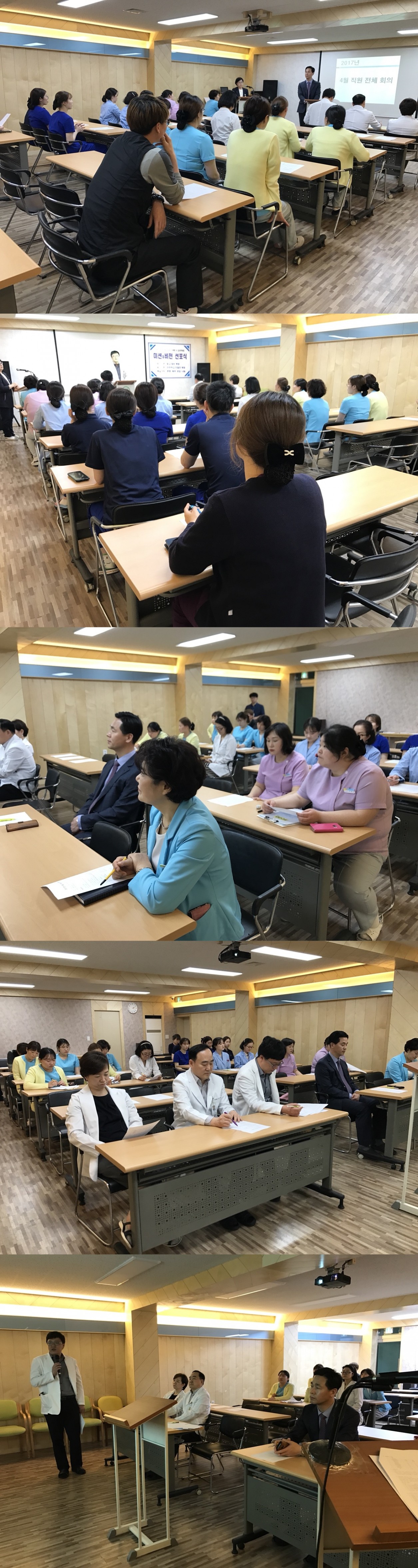 2017년 4월 직원 전체 회의가 별관 교육실에서 진행되었습니다.