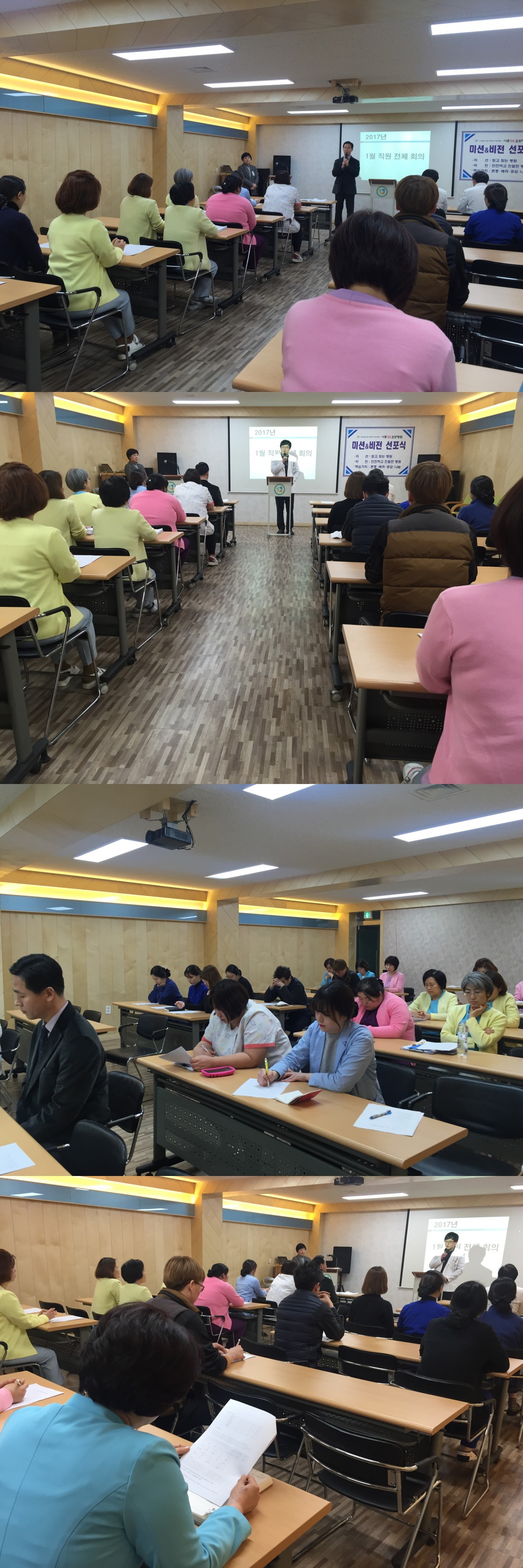2017년 1월 직원 전체 회의가 별관 교육실에서 진행되었습니다.
