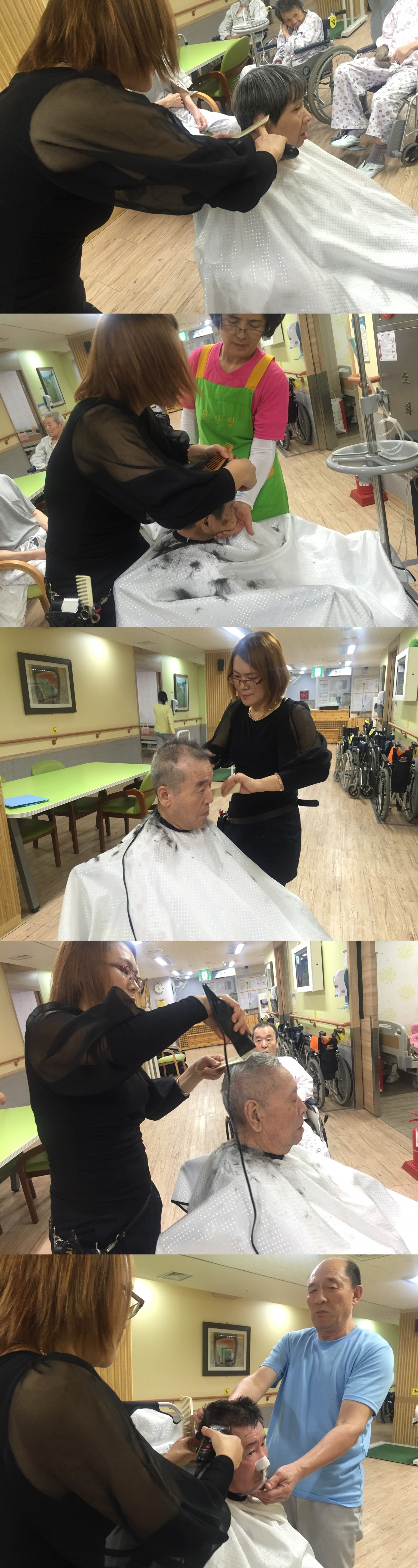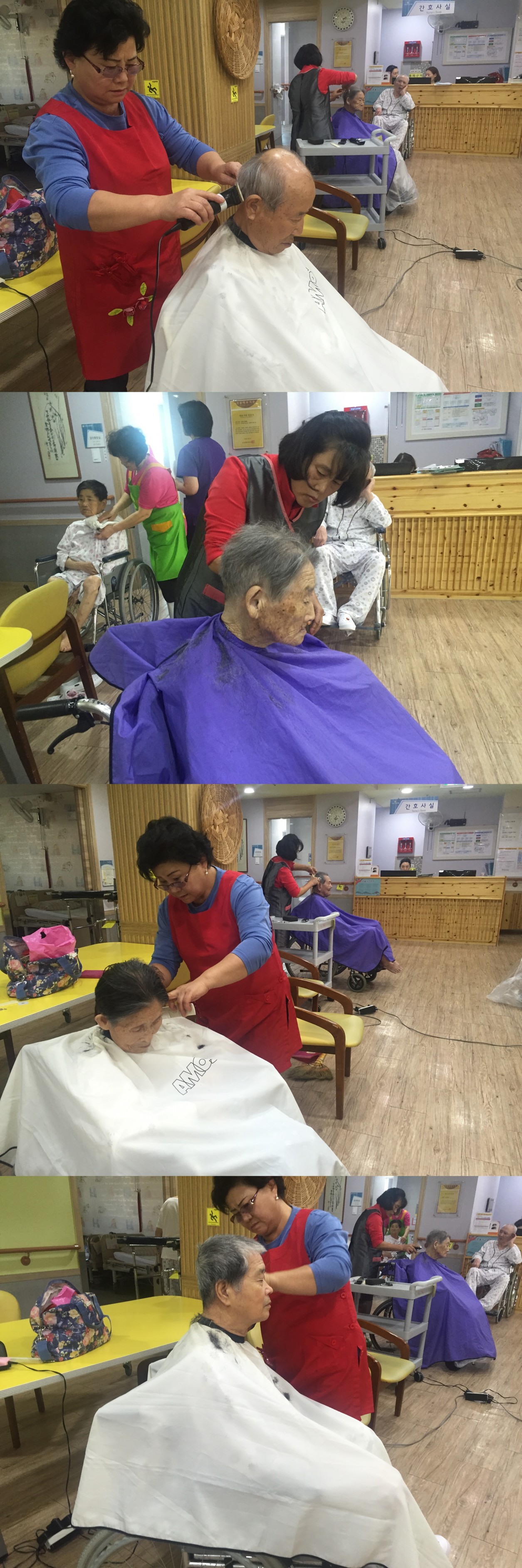 2016년 시흥SK요양병원 10월 이.미용 서비스가 진행되었습니다. 10월 어느덧 쌀쌀한 날씨 속에서 이.미용 봉사자님들께서 본원을 방문하여 환자들의 깨끗하고 청결한 두발관리를 진행하여 주셨습니다. 또한 환자분들의 취향에 따른 헤어 스타일에 맞춰 이. 미용 서비스가 진행되면서 환자분들의 만족도가 굉장히 높았던 시간이었습니다.