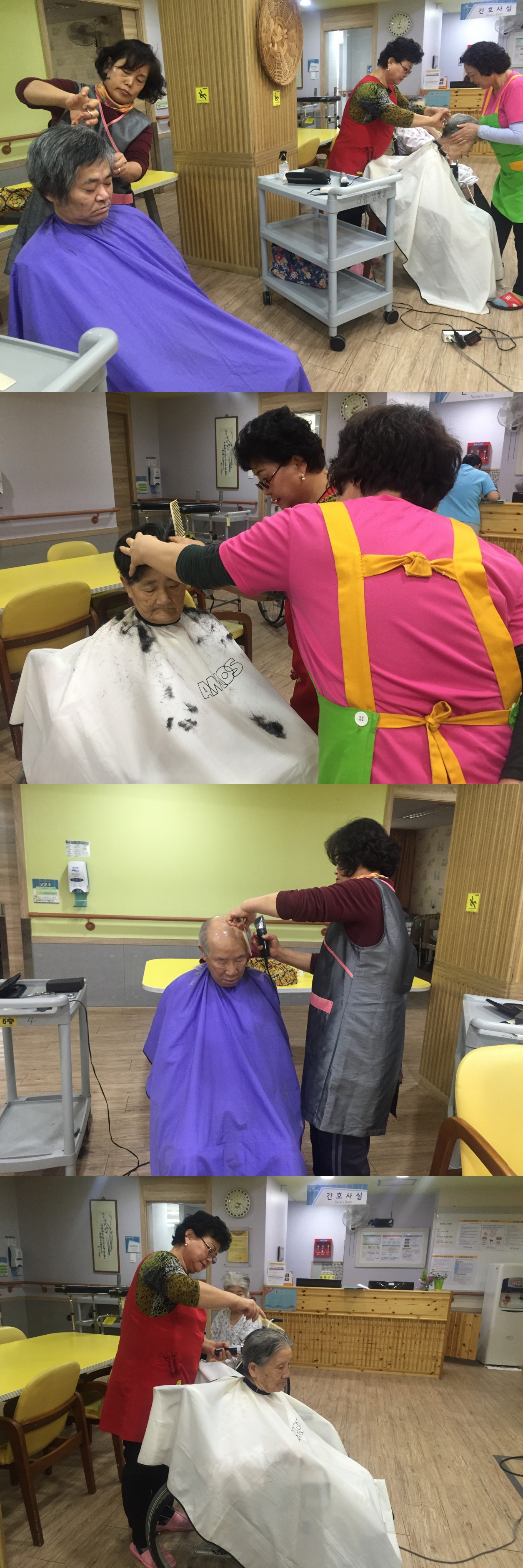 2016년 시흥SK요양병원 12월 이.미용 서비스가 진행되었습니다. 추운 날씨속에서도 봉사자분들께서 환자들의 깨끗하고 청결한 두발관리를 진행하여 주셨습니다. 환자분들께서도 이.미용 서비스를 받으시며 굉장히 높은 만족감을 나타내시는 모습을 볼 수 있었습니다.