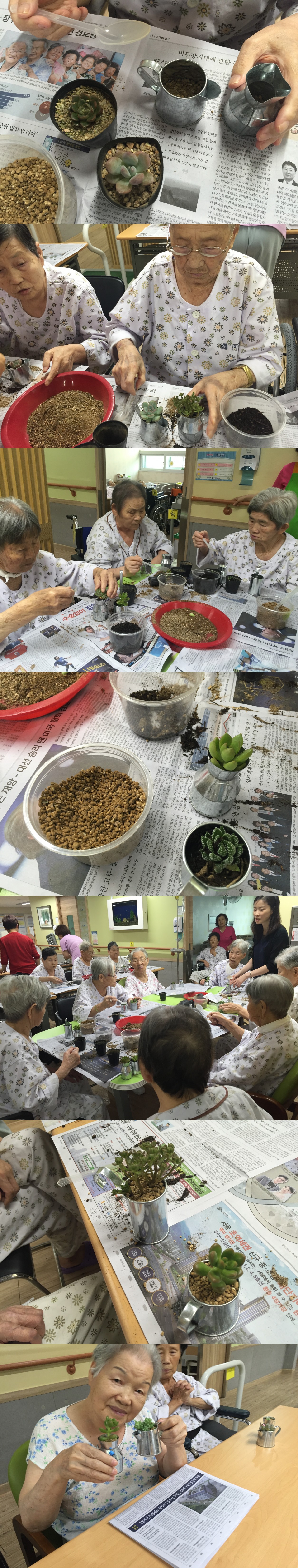 시흥SK요양병원에서는 시흥시 생명농업기술센터의 지원을 받아 원예치료 프로그램을 진행하고 있습니다. 7월 5회기 원예치료 시간에는 환자분들과 ‘다육식물 키우기’ 주제로 환자분들과 다육식물을 식재해보는 시간을 가져보았습니다.