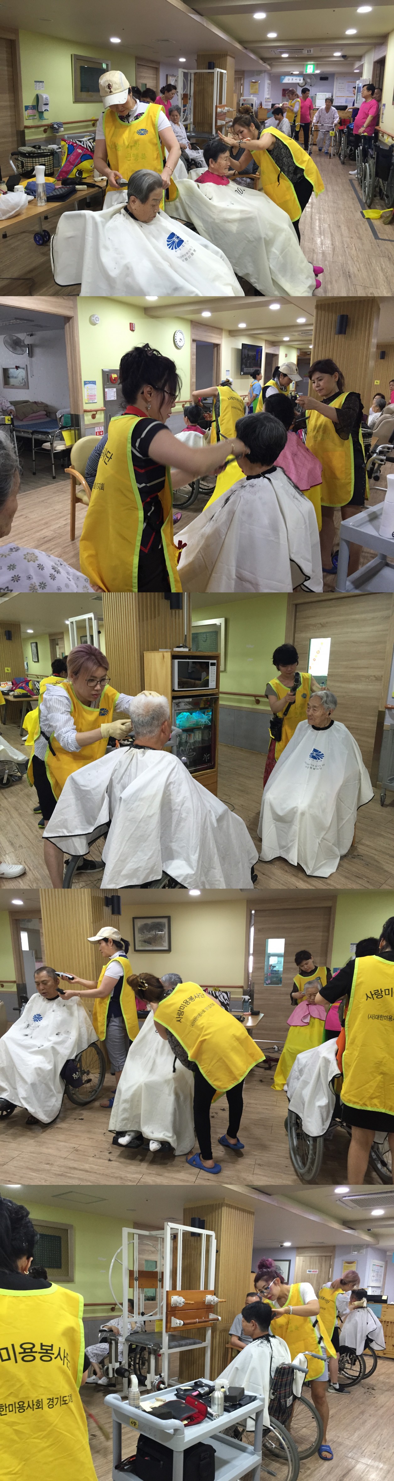 2016년 시흥SK요양병원 7월 이.미용 서비스가 진행되었습니다. 무더운 날씨 속에서 대한미용사회시흥시지부에서 8명의 전문 봉사단원들과 정기봉사자님께서 본원을 방문하여 환자분에게 깨끗하고 단정한 상태를 유지할 수 있도록 이.미용 서비스가 진행되었으며 침상에서 거동이 불편한 중증 환자분들에게는 각 병실로 찾아가 미용 서비스를 진행하였습니다.