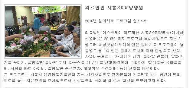 시흥시 사회복지협의회 사회복지정보센터 웹진 54호에 시흥SK요양병원 원예치료 프로그램에 대한 내용이 보도되었습니다!
