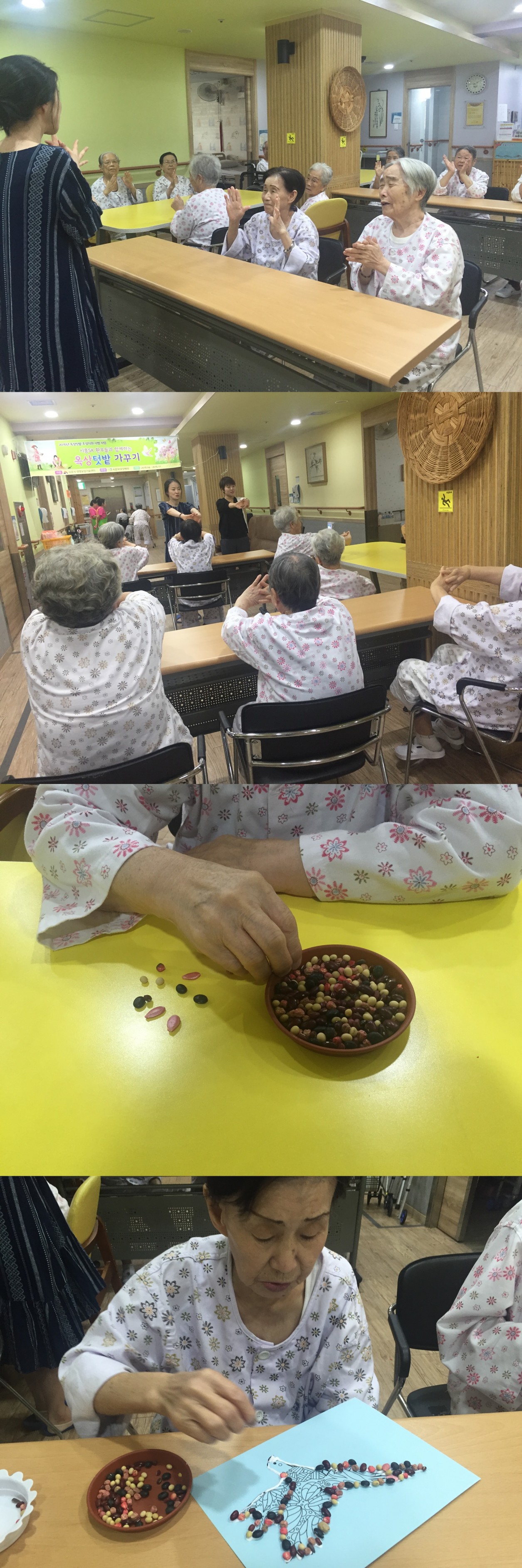 시흥SK요양병원에서는 시흥시 생명농업기술센터의 지원을 받아 원예치료 프로그램을 진행하고 있습니다. 8월 7회기 원예치료 시간에는 환자분들과 ‘알콩달콩 풍경액자’ 주제로 씨앗과 곡식을 이용하여 창의적인 풍경 액자를 꾸며보는 시간을 가져보았습니다.