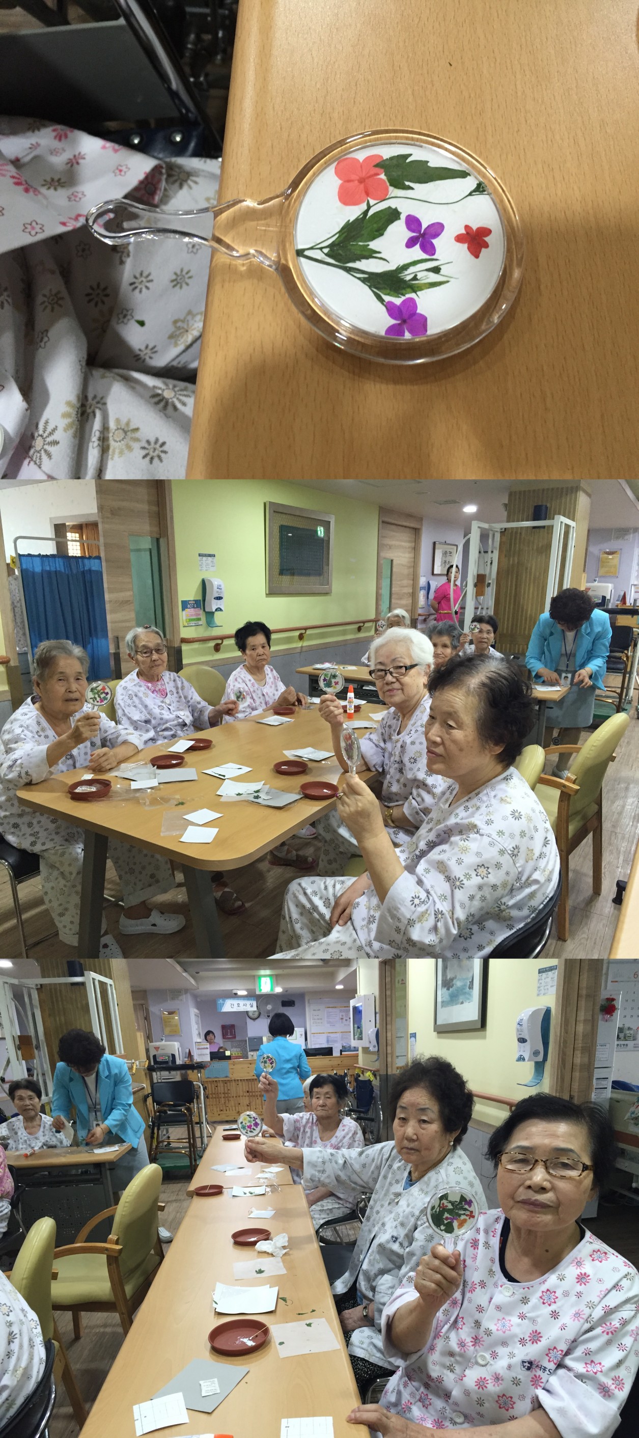 6월 중순 3회기 원예치료 시간에는 환자분들과 ‘압화 손거울 꾸미기’ 주제로 압화(누름꽃)을 이용하여 손거울을 장식해보는 시간을 가져보았습니다.