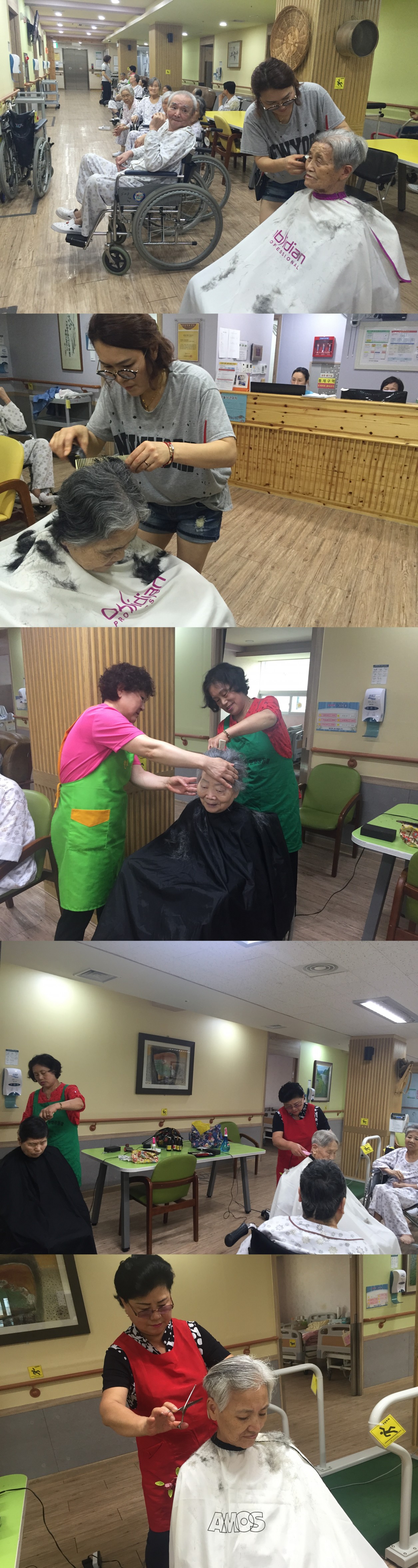 2016년 시흥SK요양병원 7월 이.미용 서비스가 진행되었습니다. 무더운 날씨 속에서 깨끗하고 단정한 상태를 유지할 수 있도록 이.미용 서비스가 진행되었으며 거동이 불편한 중증 환자분들에게는 각 병실로 찾아가 미용 서비스를 진행하였습니다.