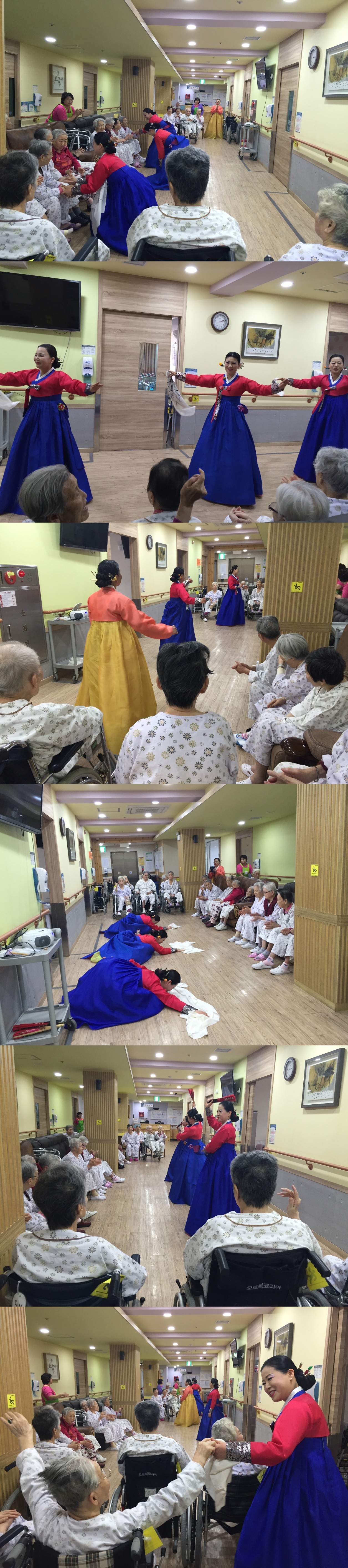 각층별의 환자분들이 ‘예쁜날들 무용단' 공연이 있다는 소식에 각 병동 환자분들이 관람 하는 모습을 볼 수 있었습니다. 또한 다양한 전통음악과 민요춤을 통하여 참여환자들께서 울고 웃는 시간이 될 수 있었습니다.