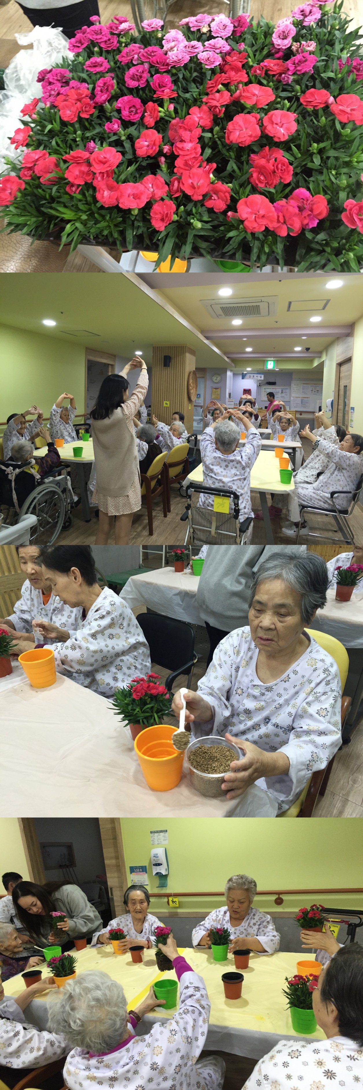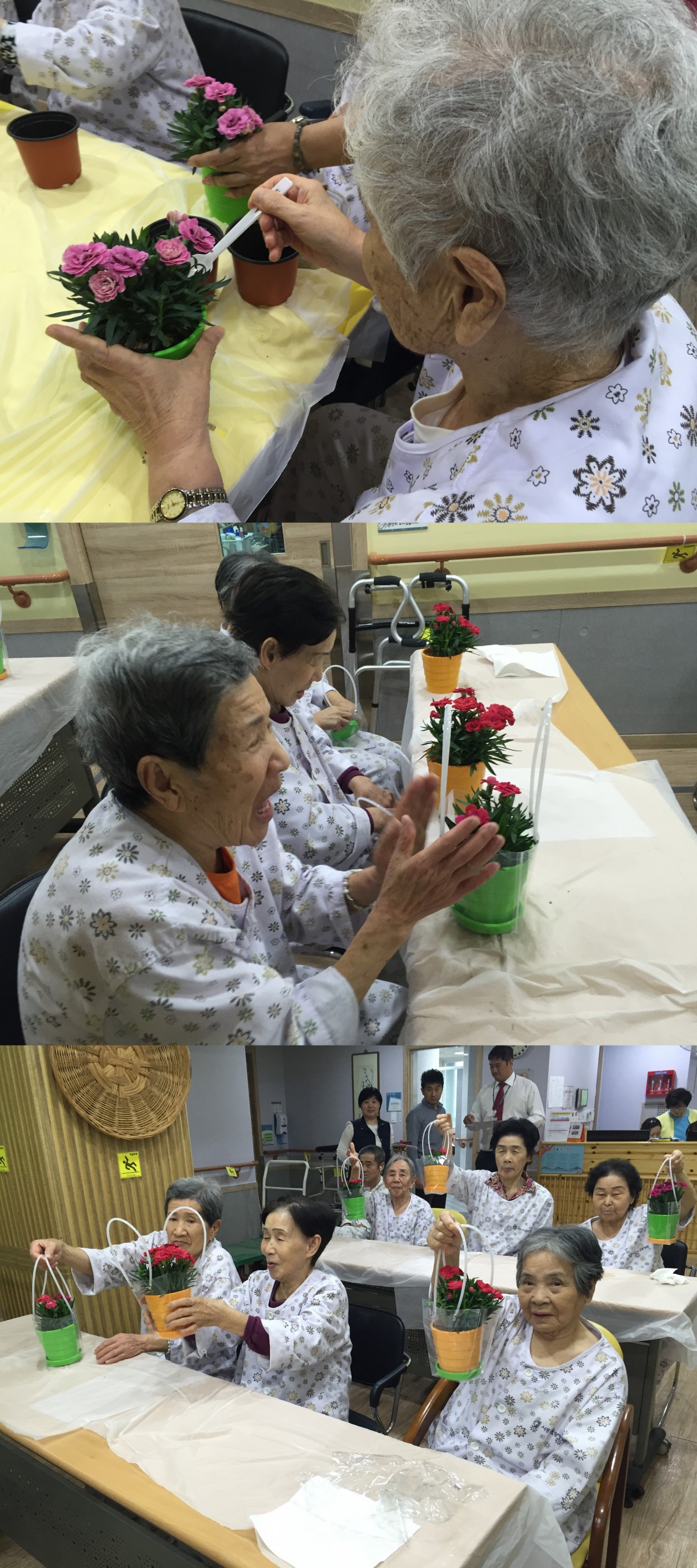 완성된 카네이션 화분을 보고 각 병실에 가지고 돌아감으로서 행복해 하시는 모습을 볼 수 있었습니다.
