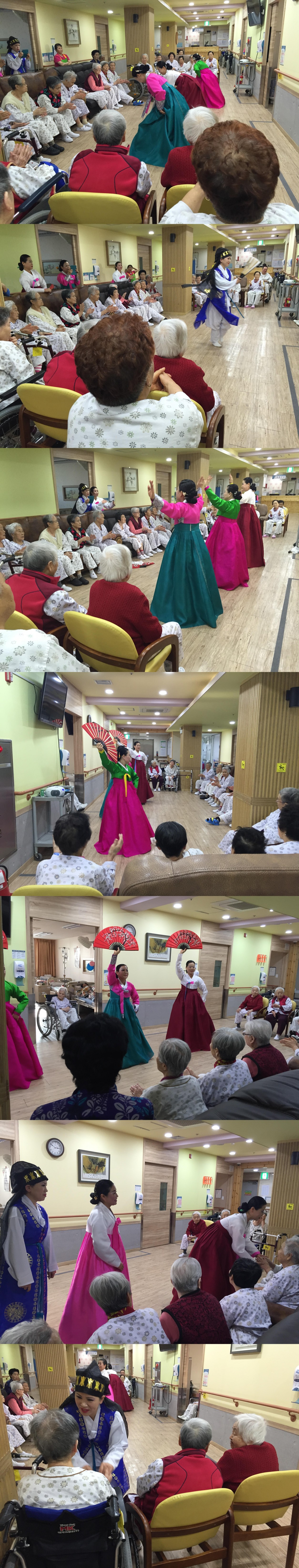 2016년 1월 첫 공연으로 전통 가곡에 맞춰 멋진 노래와 무용 공연이 있었습니다. 많은 환자분들이 관람하시면서 너무나 좋아하시며 "좋다, 자주 왔으면 좋겠다. 너무 즐겁다" 라며 굉장히 좋아하시는 모습을 볼 수 있었습니다.
