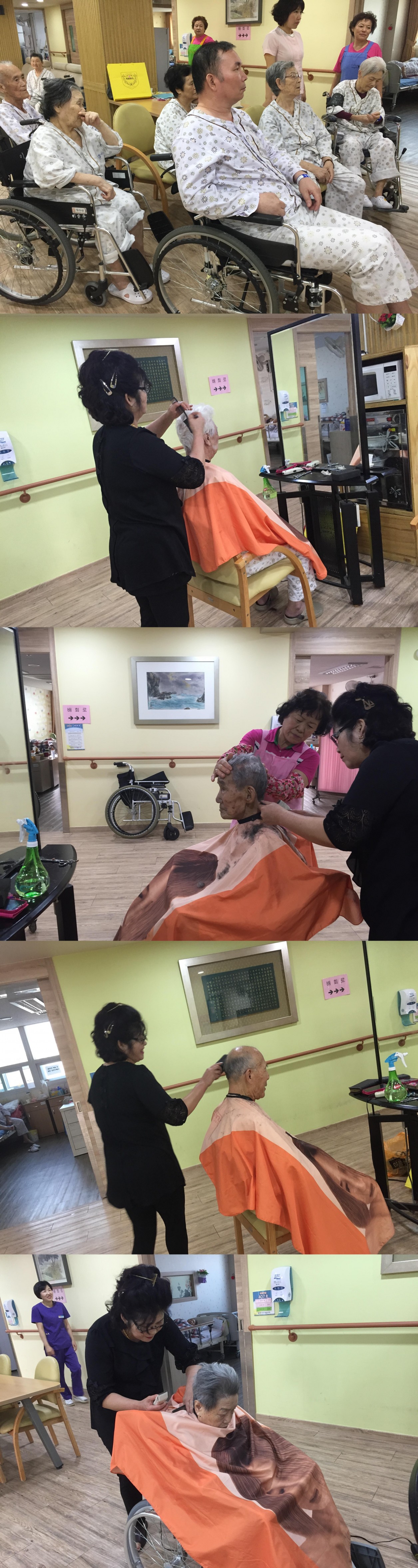 환자분들 모두 깔끔하게 다듬어진 머리를 보며 마음에 드시는지 웃음꽃이 피셨는데요~