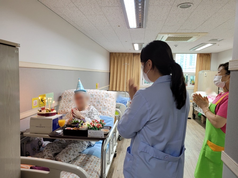 시흥에스앤케이요양병원에서는 매달 입원환자분들 대상으로 생일을 맞이한