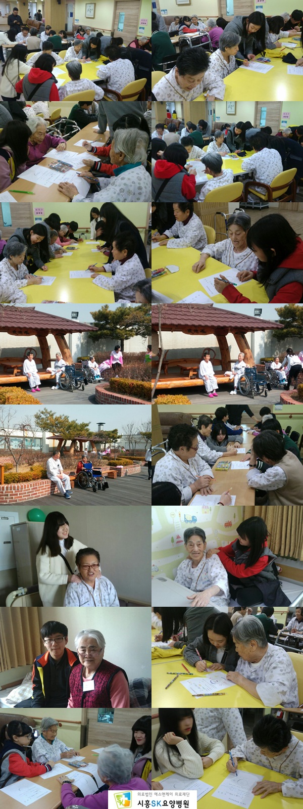 1365 자원봉사자활동관리 수요처기관으로서 중,고등학교와 연계하여 다양한 봉사활동 프로그램을 운영중에 있으며 특별히 2015년에는 시흥시 장곡동에 위치한 응곡중학교와 봉사협약을 맺고 봉사자 22명이 매월 1회 토요일 정기적인 방문을 통해 미술치료, 말벗서비스, 노력봉사등을 시작했습니다.