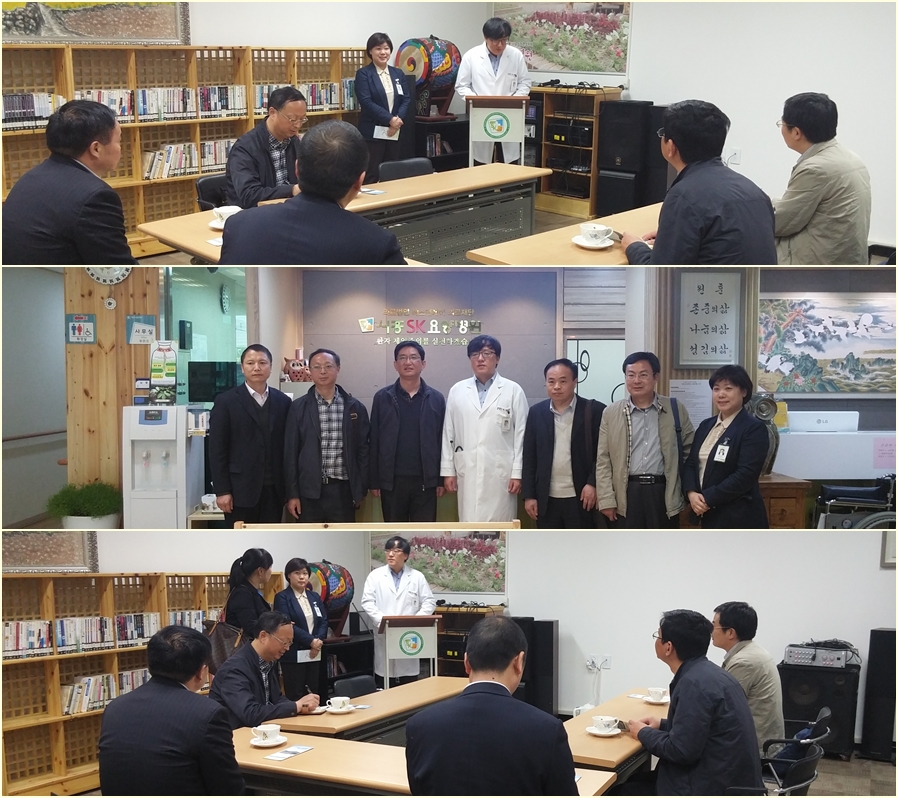 중국 공무원관계자들이 본병원에 견학차 방문하여, 원장님께 우리나라 요양병원의 운영에대한 설명을 듣고 난 후 시설 라운딩을 실시하였습니다.