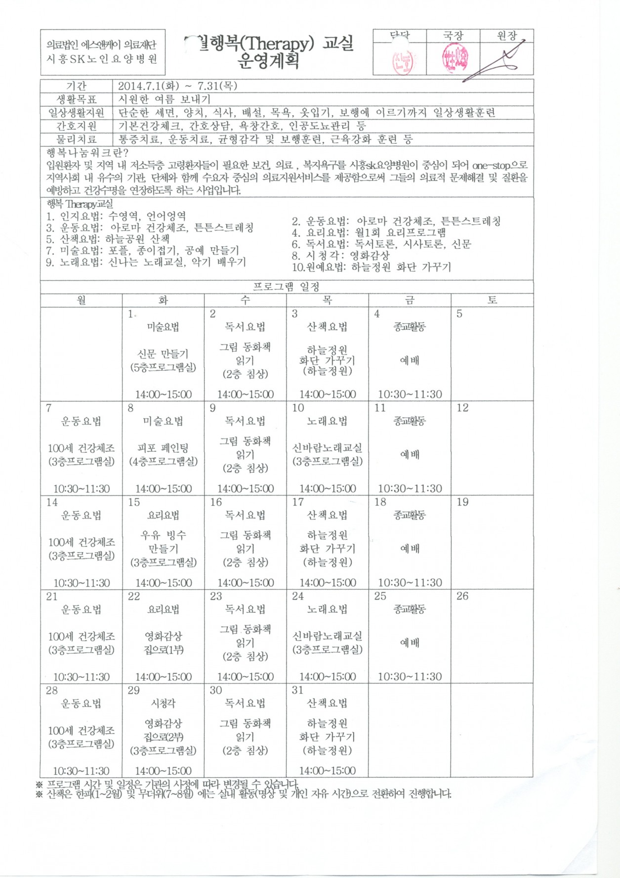 2014년 7월 행복테라피 (Therapy) 운영계획