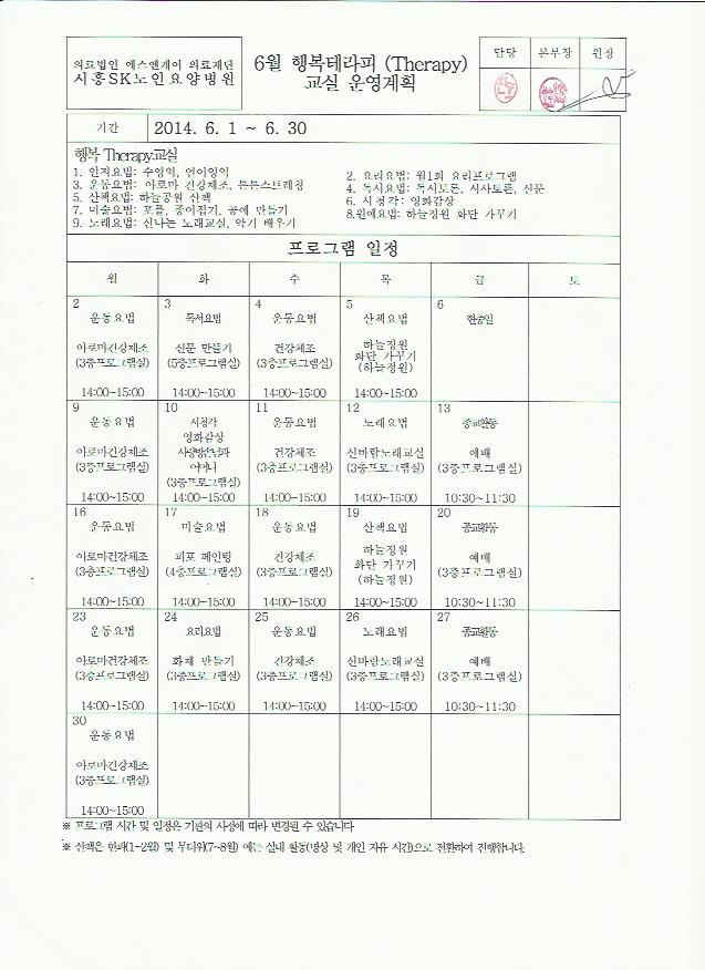 2014년 6월 생활계획표