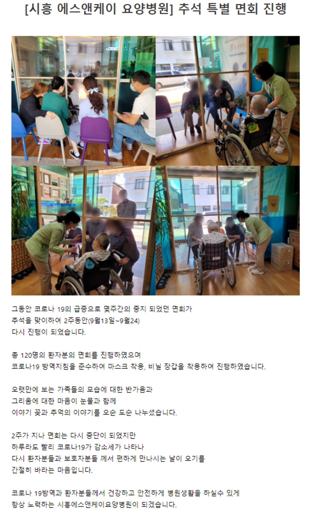 좋은 사람들이 함께하는 소래푸른숲 요양병원이 되겠습니다.