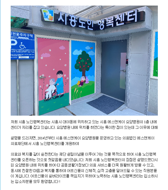 부대사업인 시흥노인행복센터에 대한 내용이 보도되었습니다!