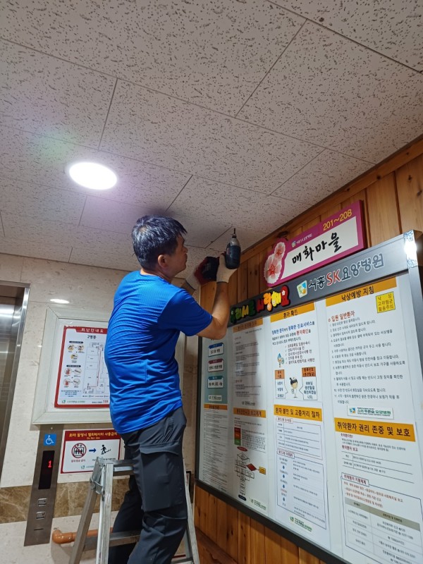 오늘은 2층 병동 천장에서 물이 조금 새는 문제가 발생 했었습니다.