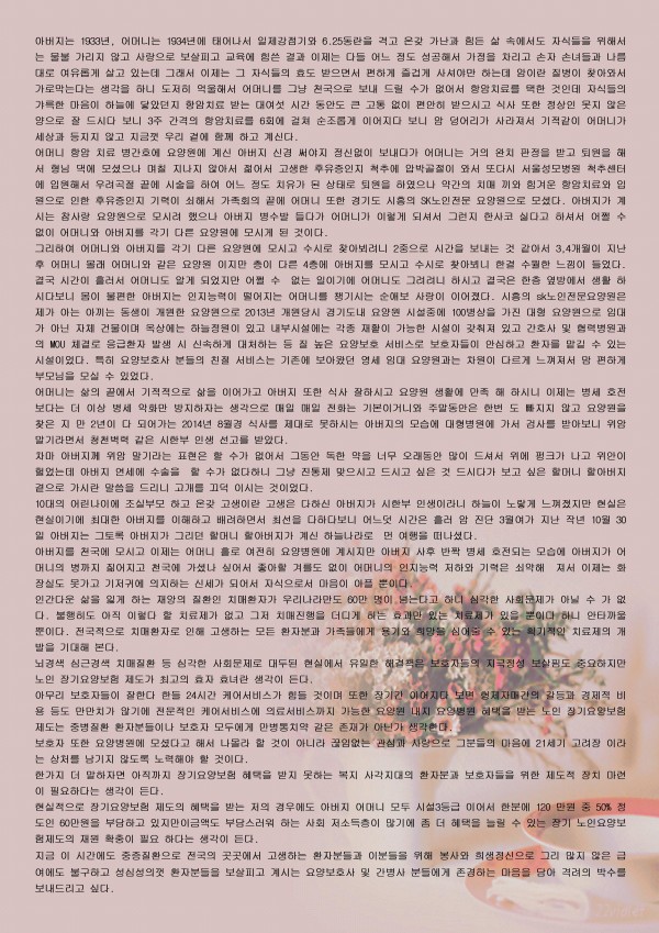 이맹이 환자보호자의 부모님 돌봄 체험수기입니다.