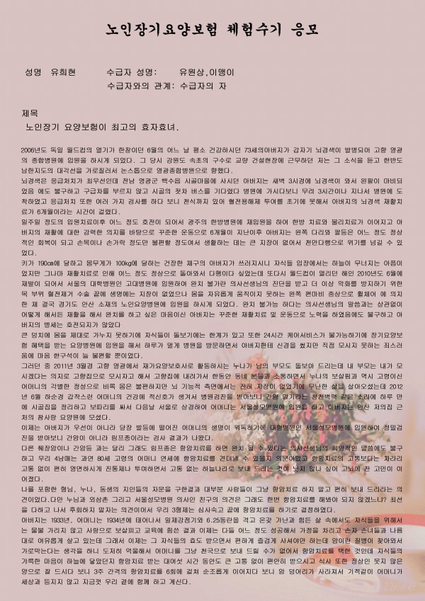 이맹이 환자보호자의 부모님 돌봄 체험수기.