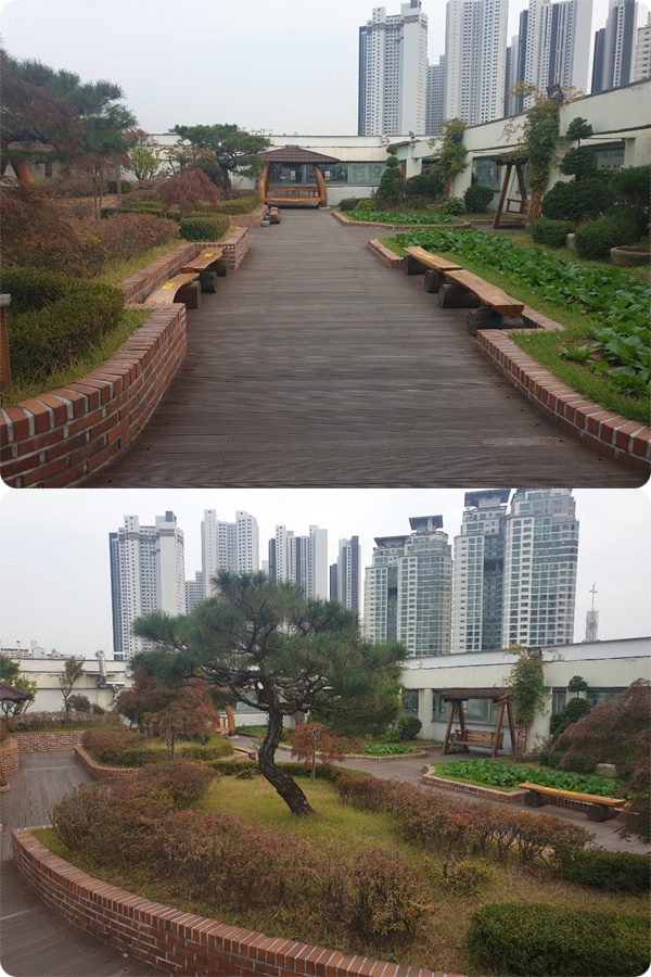 어느덧 10월입니다. 병원 내 옥상 하늘 정원의 텃밭 작물모습과 함께 푸른 나무들,