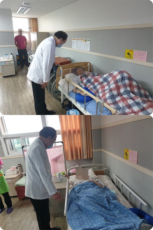 환자 한 분, 한 분 꼼꼼히 살피며 회진을 돌고 계시는 모습입니다.
