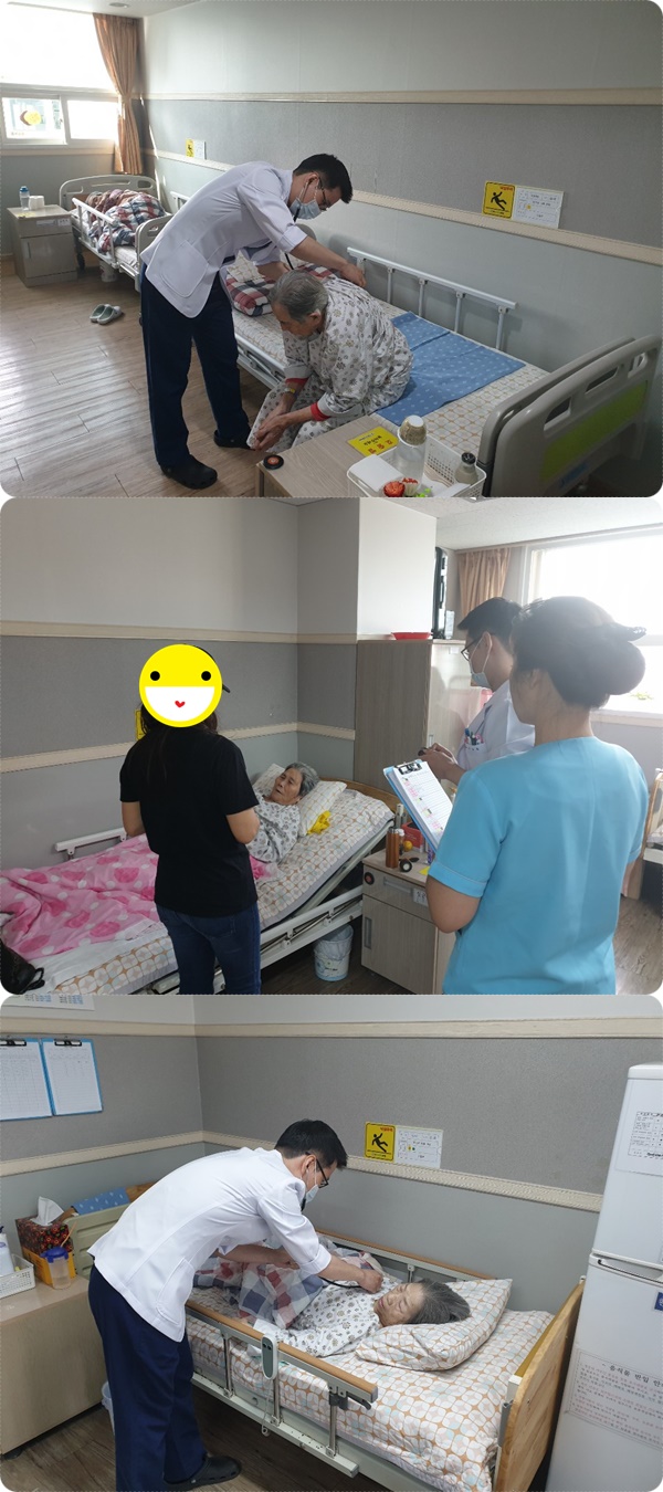한 분 한 분 꼼꼼히 살피며 회진을 돌고있는 모습입니다.