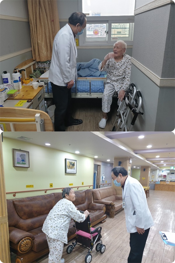 가정의학과 심형무 과장님 병동 라운딩 모습입니다.