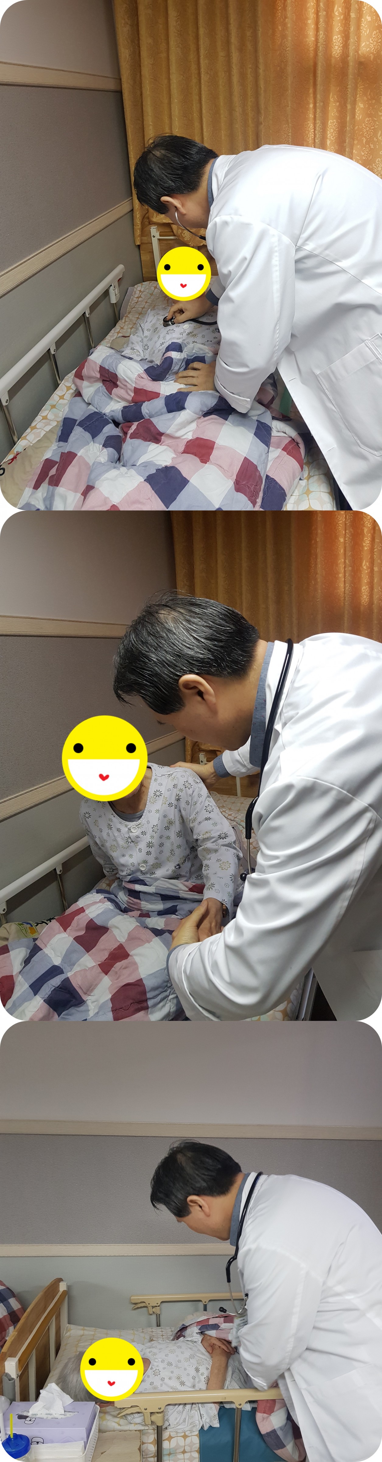 병동 간호사와 함께 병동을 돌며 환자분들의 불편한 곳을 체크하고 계십니다.