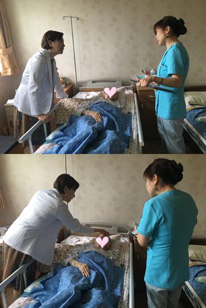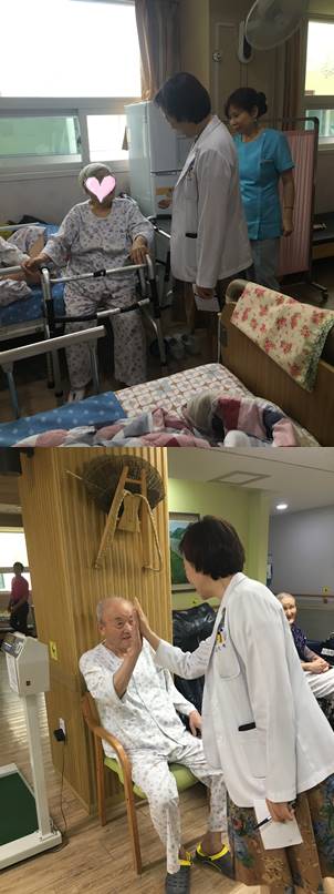 환자분 상태와 식사량 체크를 하며, 활기찬 하루를 보내실 수 있도록 진료하고 계십니다.