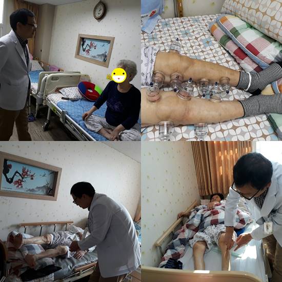 환자분의 불편한 곳에 침을 놓고계십니다.