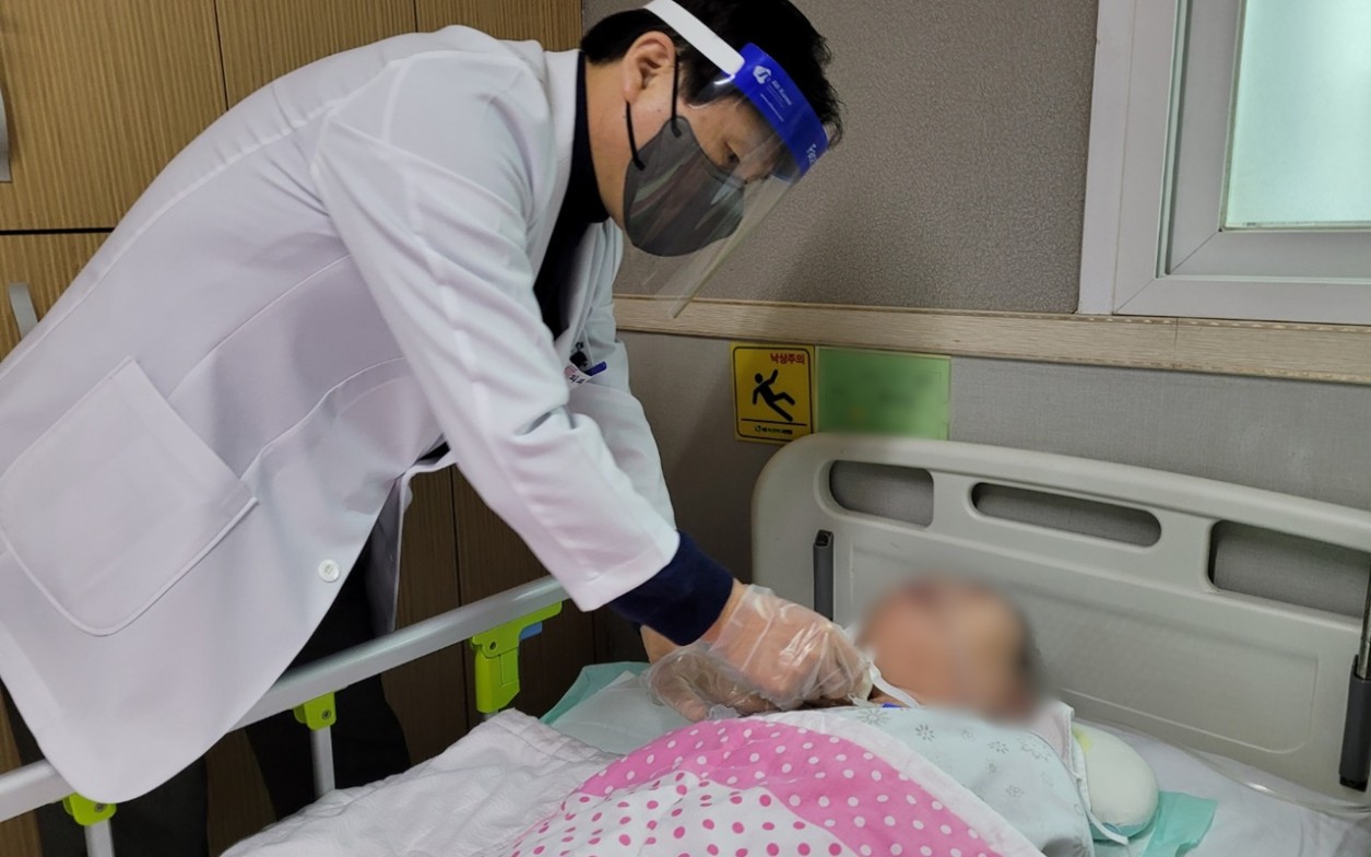 병동 간호사와 함께 병동을 돌며 환자분들의 불편한 곳을 체크하고 계십니다.
