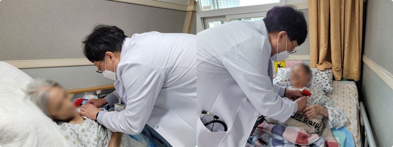 김형석 원장님께서 회진과 동시에 환자분들께 한분 한분 감사함과