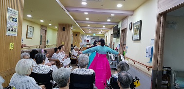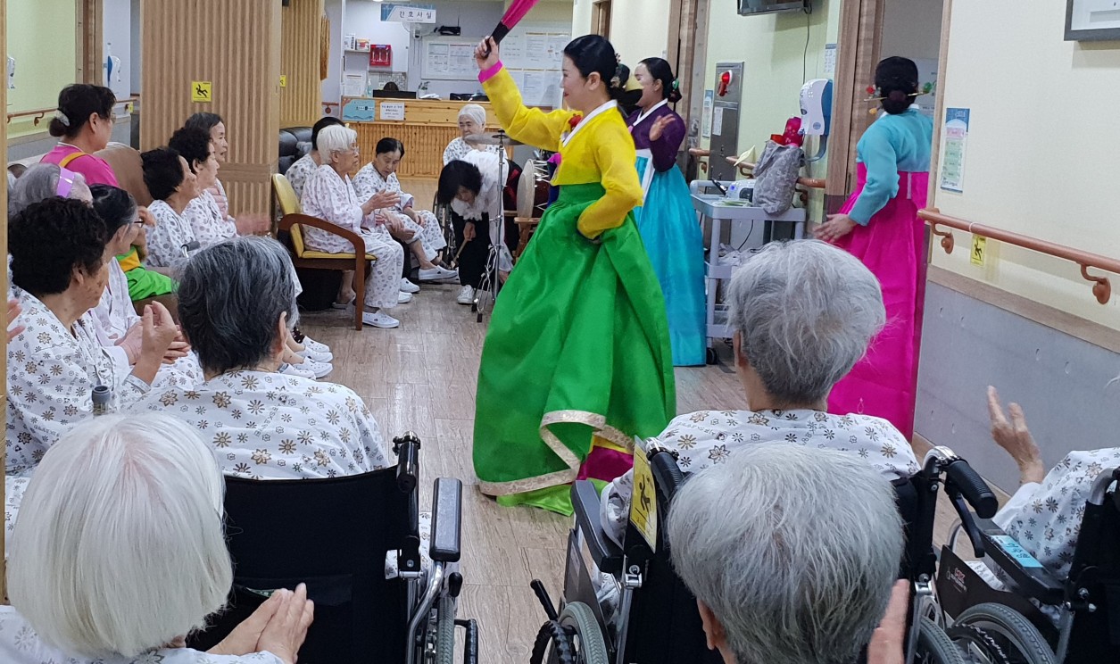 원내에선 장고 소리와 구성진 전통 노랫가락이 흘러나오고....