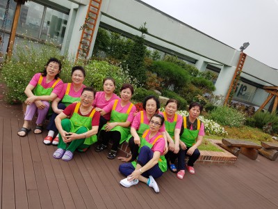 수고해 주는 분들이 하늘 공원에 모여 한컷 ... 환하게 웃으며 찰칵