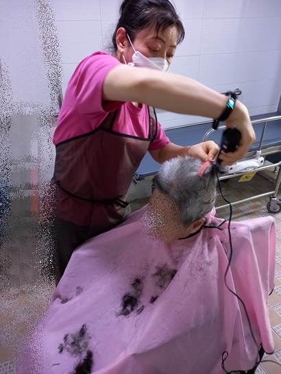 어르신들 미용한후 개운하게 머리도 감고