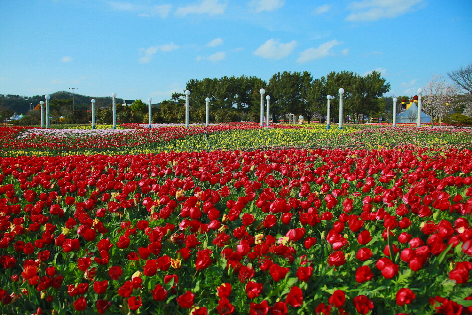 코로나로 인한 답답한 일상에서 봄의 향기를 느낄수 있는노 붉으스레 피어난 튜울립,벛꽃 감상하시고 힐링하세요!!!