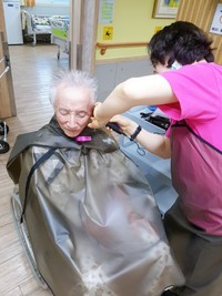 병동에서 어르신을 위한 직원에 재능기부(미용)