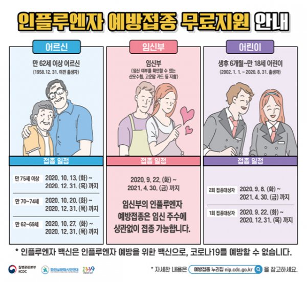독감 예방 접종 후 항체가 형성되는데 2주 정도 걸리기 때문에 11월 중순 유행 시기에 맞춘다면 10월 말까지는 예방접종을 마쳐야 한다는 것이 전문가들의 의견입니다.미국 질병통제예방센터에서는 "생후 6개월이 넘은 사람은 9~10월 사이에 독감 백신을 맞는 게 바람직하다"고 권고했으며 "65세 이상이라면 특히 시기를 놓치지 않도록 주의할 것"이라고 당부했습니다.날씨가 쌀쌀해지면 해마다 급성 호흡기 질환인 '독감'이 유행 조짐을 보입니다. 독감은 단순히 심한 감기를 지칭하는 게 아니라, 감기를 일으키는 원인이 인플루엔자 바이러스일 때만 독감이라고 명칭합니다. 증상은 39도 이상 고열이 특징이며 두통과 근육통을 동반합니다.특히 노인과 어린이같이 다양한 질병에 노출돼 있을 경우, 독감 예방주사를 필수로 맞는 것이 좋습니다.