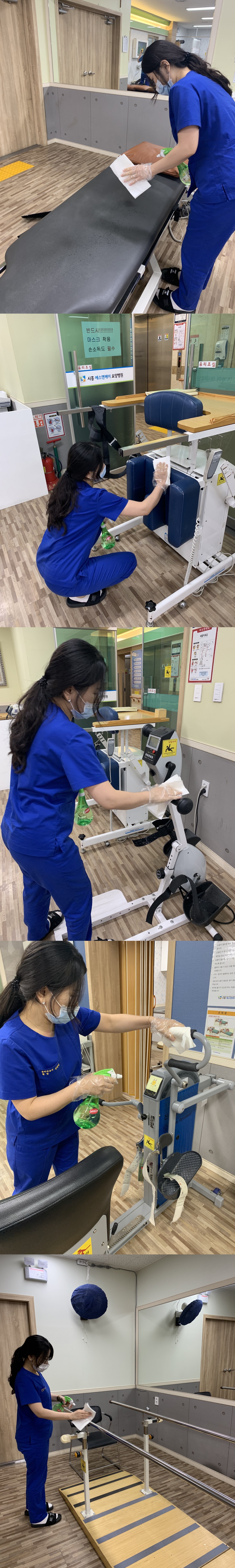 매일매일 치료기구들과 치료실을 알콜로 청소하며 소독을 실시하여,