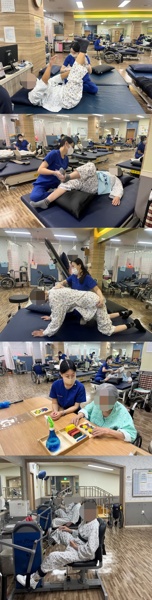 위 사진은 열심히 운동치료 중이신 어르신들 모습입니다.