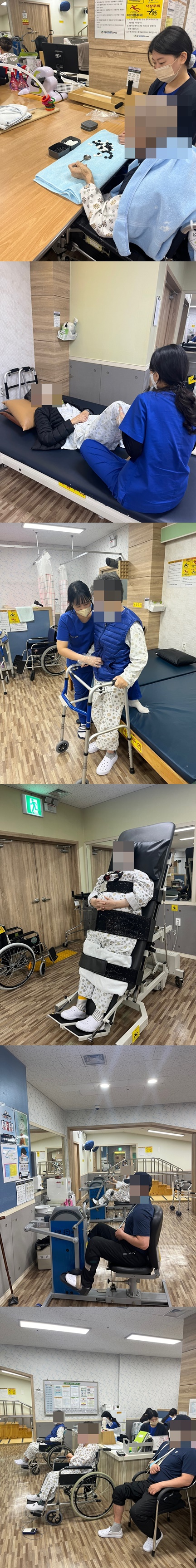 위 사진은 열심히 운동치료 중이신 어르신들 모습입니다.