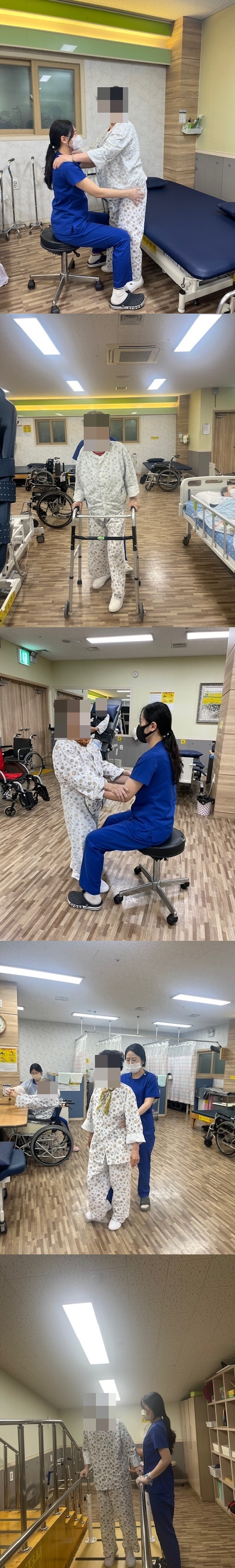 위 사진은 보행치료 중이신 어르신들 모습입니다.