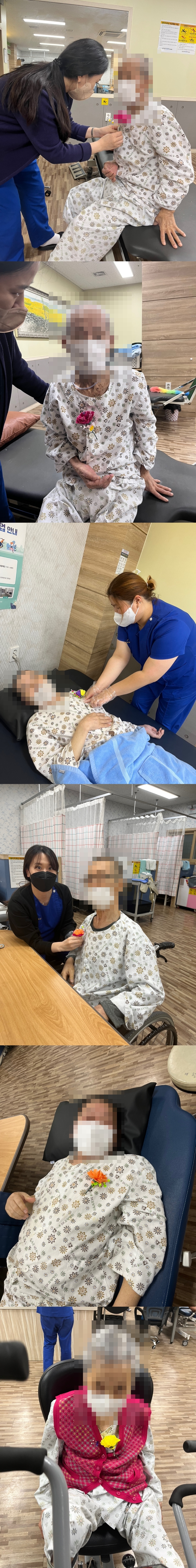 어르신들께 꽃을 달아 드렸는데요 :)